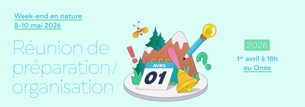À l’occasion du prochain week-end nature qui se déroulera du vendredi 8 au dimanche 10 mai 2026, nous vous convions le mercredi 1er avril à 18h au Onze pour une réunion en vue se rencontrer et préparer ensemble le week-end.